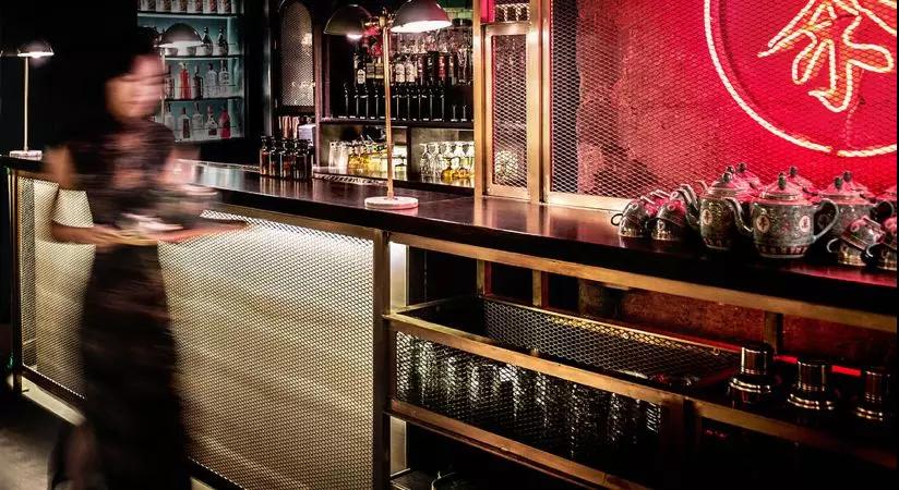 被廣東話的綠色霓虹燈點(diǎn)燃,從豪華的紅色窗簾反射出來,創(chuàng)造出一個飽和的Nicolas Winding Refn電影房間,在華麗的設(shè)計之中,茶室之旅中有很多新奇之處。菜單印在報紙上。有來自臺北,新加坡和香港的老式乙烯基唱片的自動點(diǎn)唱機(jī)出現(xiàn)60年代的曲調(diào)。這里有著中國飲料,被稱為“中國伏特加”,還能找到與花生和枸杞的新奇搭配。
