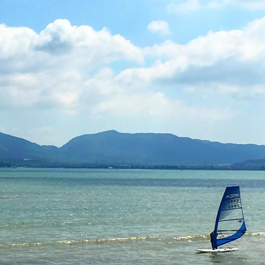 較場(chǎng)尾是內(nèi)海,浪比較小,每年的9月份開(kāi)始起風(fēng),很適合玩風(fēng)箏沖浪之類的項(xiàng)目。還有現(xiàn)在很流行的空中飛人,在較場(chǎng)尾也有得玩,還配有專業(yè)教練一對(duì)一教學(xué)。