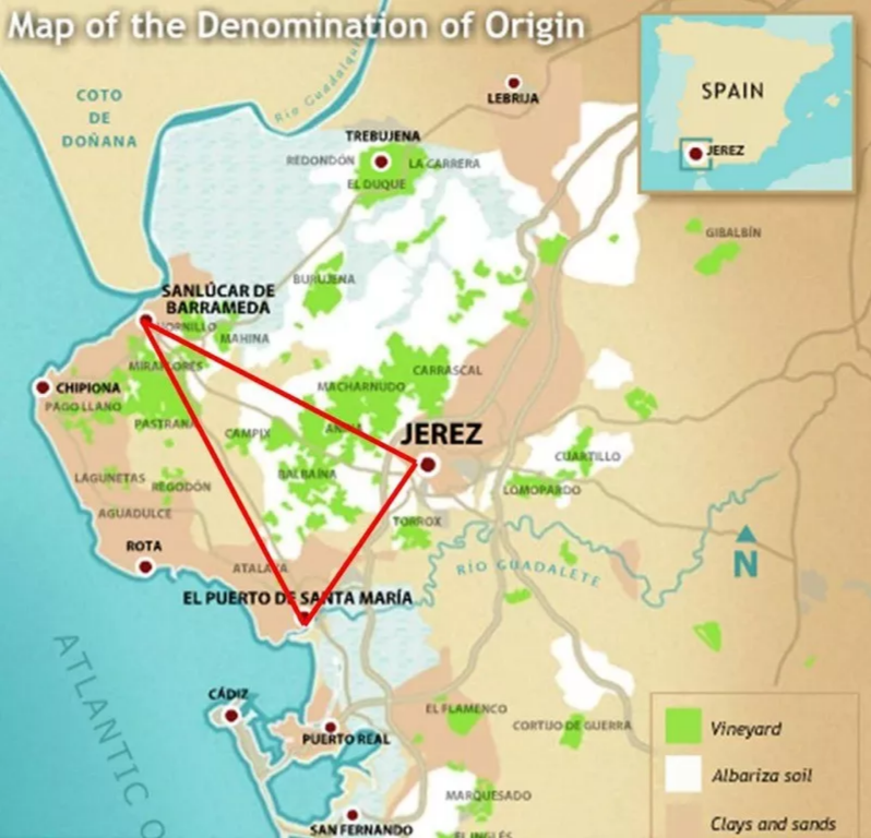 雪莉三角區(qū)位于西班牙西南部的安達盧西亞自治區(qū)。主要產地是赫雷斯(Jerez),再加上兩座海邊小城Sanlúcar de Barrameda和El Puerto de Santa María。全世界的“真”雪莉,只產自這三個地方。