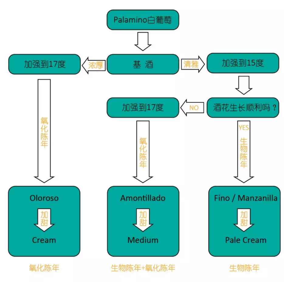 所有的干型和加甜型雪莉酒都是用帕拉米諾(Palomino)葡萄釀制的。