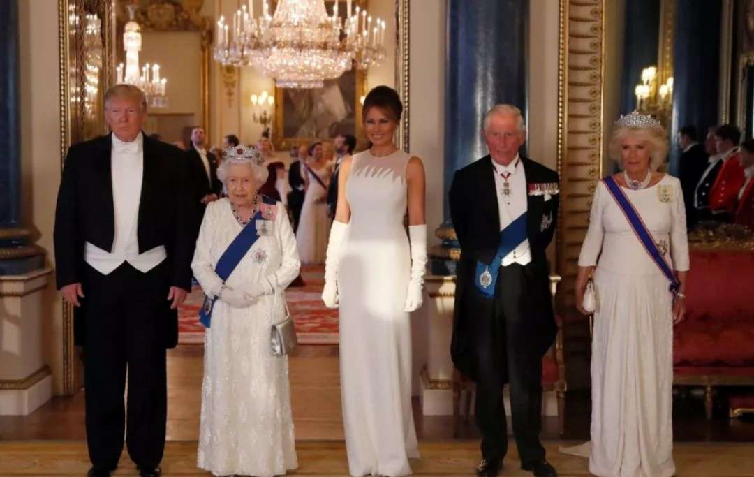英女王在白金漢宮宴請(qǐng)首次到訪英國(guó)的美國(guó)總統(tǒng)唐納德?特朗普。