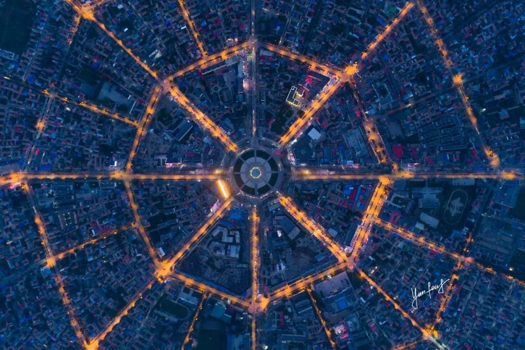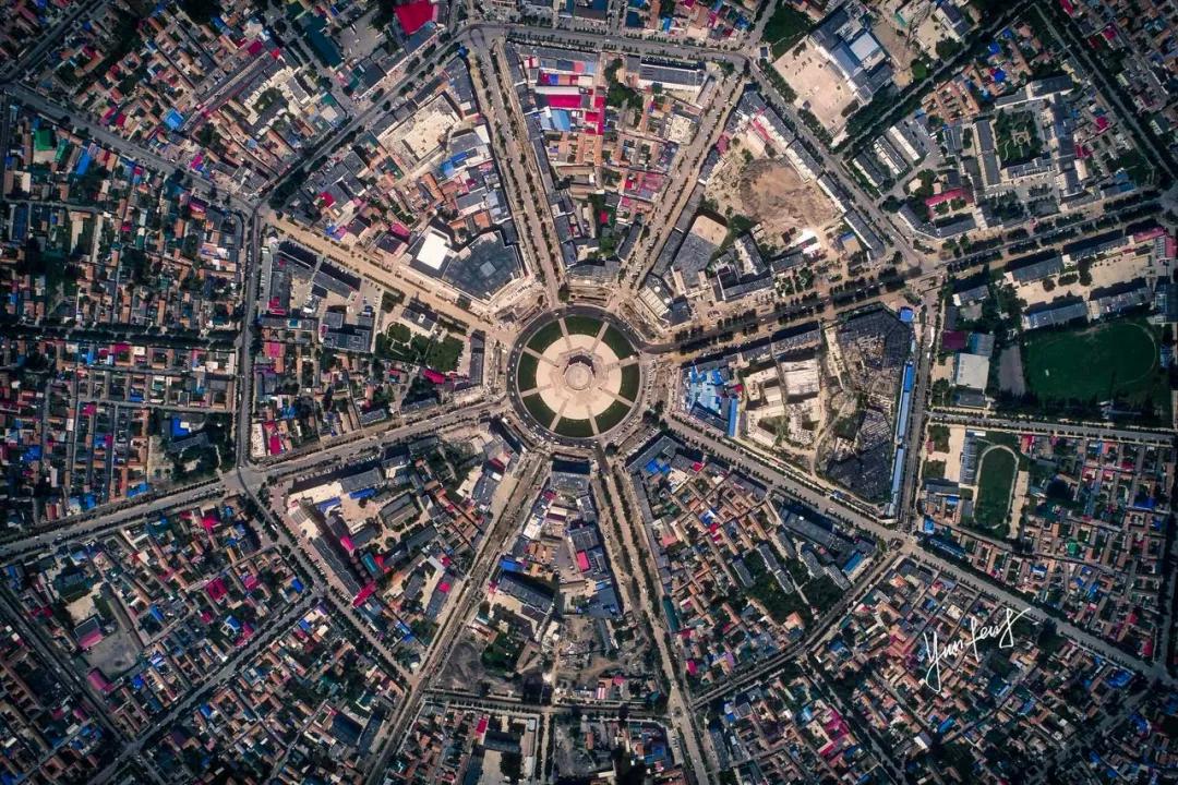 八卦城是按照《易經》來建造的,以城區(qū)中心廣場為“陰陽”兩儀的太極圖向外延伸,按照八卦方位向外輻射出8條主街,每條街長1.6公里,每隔360米設一條環(huán)道連通。