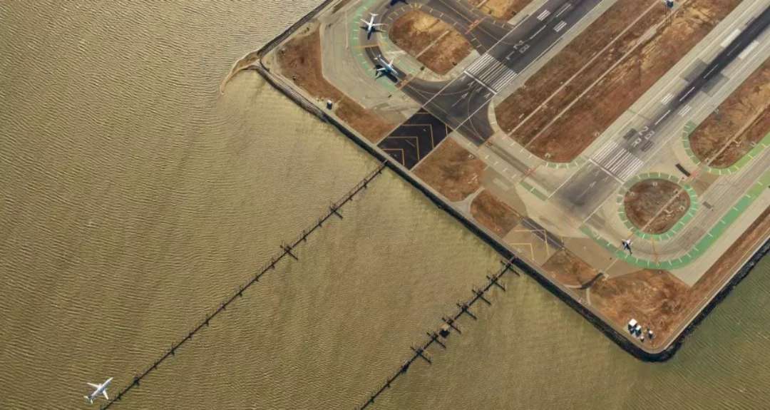 舊金山國際機場(SFO)有四條跑道。這是我拍攝的編號28號的跑道降落端處的罕見景觀。我一直夢想著從空中記錄這個繁忙機場的動感時刻。經(jīng)過申請,我終于獲準從機場上空直接駕駛飛機經(jīng)過。這是一個大風天,機場的風速在每小時35-45英里。強烈的飛行顛簸,讓一邊控制飛機,一邊忙著拍攝的我簡直手忙腳亂。這次飛行拍攝很有挑戰(zhàn)性,但它也是如此的令人激動,完成這個拍攝計劃讓我?guī)滋於妓恢?/span>