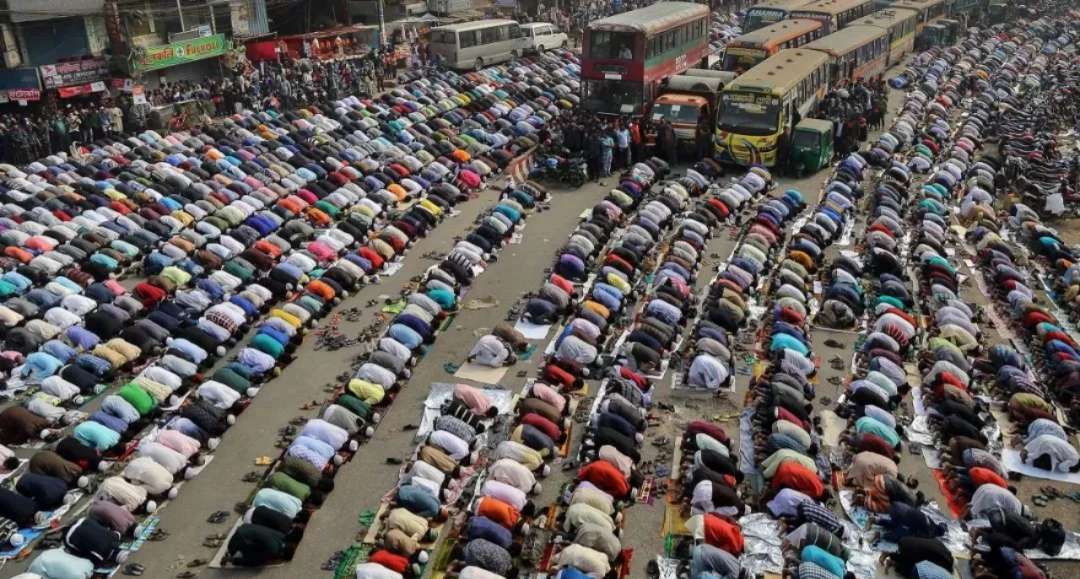 在伊教“全球盛會”期間,人們在孟加拉國的達卡街道上祈禱。“全球盛會”(Bishwa Ijtema) 是每年在達卡舉行的主要宗教聚會之一,聚集了數(shù)百萬信徒參加。專用的祈禱場地已經(jīng)不足以容納這么多人,所以很多人來到達卡的主要街道祈禱。在此期間,所有地面交通和行人都將暫停等待儀式結(jié)束。