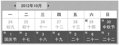 之前《國務(wù)院辦公廳關(guān)于2012年部分節(jié)假日安排的通知》中已對(duì)今年中秋國慶假期的放假調(diào)休日期做出了具體安排。其中中秋節(jié)和國慶長假合并安排為8日假期,自9月30日至10月7日。之前曾在2009年出現(xiàn)過一次中秋國慶合并的8天假期。
