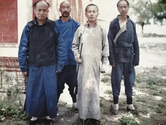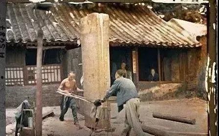 1913年,山東曲阜,一個年輕人靠在孔廟大殿的石柱上。當(dāng)時的人們都還留著長辮子。