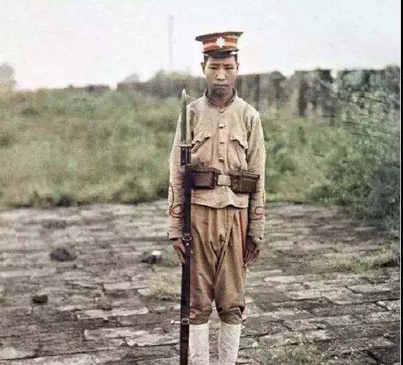 清朝士兵持槍而立。