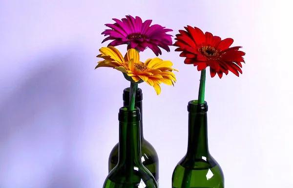 酒瓶特有的形狀好像天生就是為插花設(shè)計的。