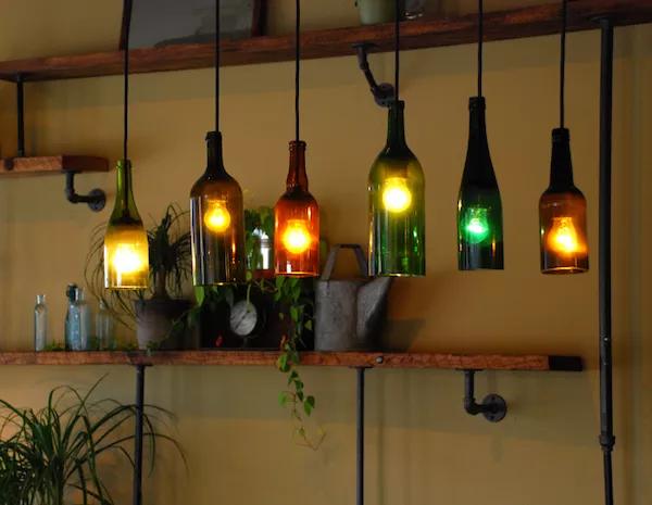 小心地在酒瓶上鉆幾個小洞,然后鑲嵌進(jìn)一些小燈。關(guān)上燈,感覺像是過節(jié)一樣。