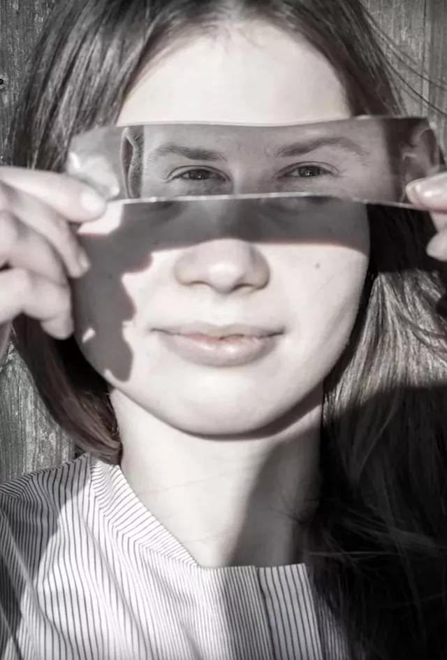 你也可以讓拍攝對(duì)象的對(duì)面站另一個(gè)人,通過“雙重反射”,把倆人的五官疊加在同一位置上,創(chuàng)造奇幻的效果。當(dāng)然,你需要不斷調(diào)整角度,才能實(shí)現(xiàn)這一拍攝目的。