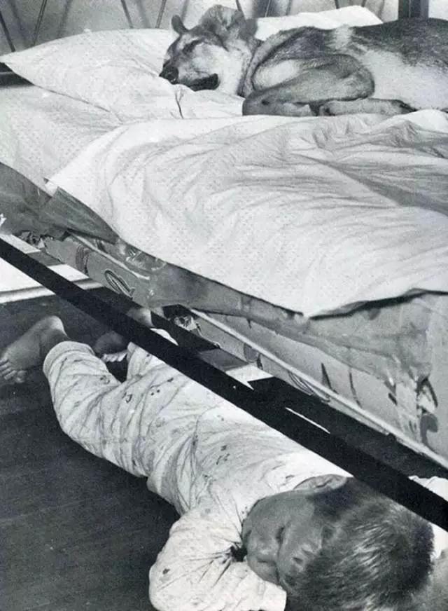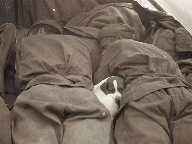 二戰(zhàn)的戰(zhàn)場(chǎng)上,兩個(gè)士兵護(hù)著一只狗狗就這樣安穩(wěn)地睡著了。