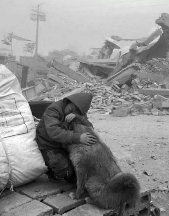 沒(méi)有了家的小男孩,抱著一直默默待在旁邊的狗狗,哭了很久很久。