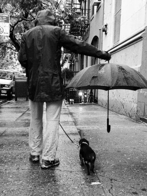 雨下的很大,他有傘,卻只是把帽子戴在了頭上......