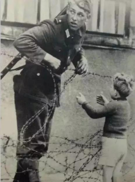 戒備森嚴(yán)的戰(zhàn)爭(zhēng)里,一個(gè)士兵正偷偷幫助一個(gè)小男孩翻過(guò)鐵網(wǎng),和家人團(tuán)聚。