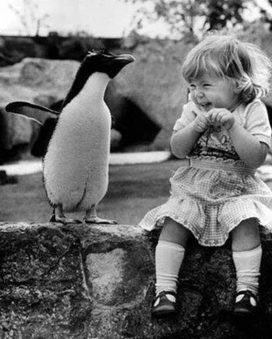 第一次見(jiàn)到企鵝寶寶的小丫頭,高興地手足都無(wú)措了。