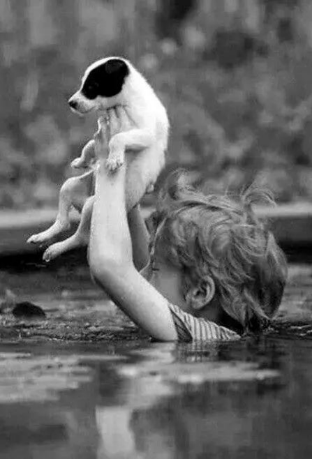 為了救落在水里的小狗,他甚至忘記了自己此刻也很危險(xiǎn)。