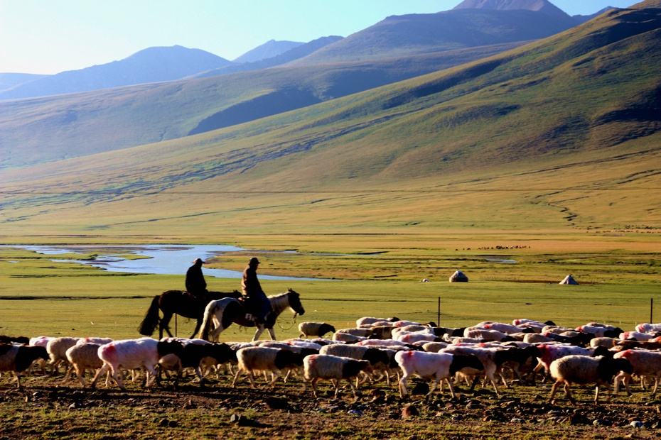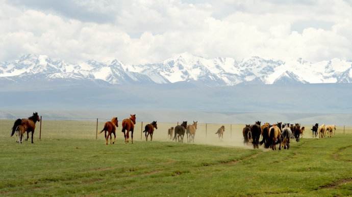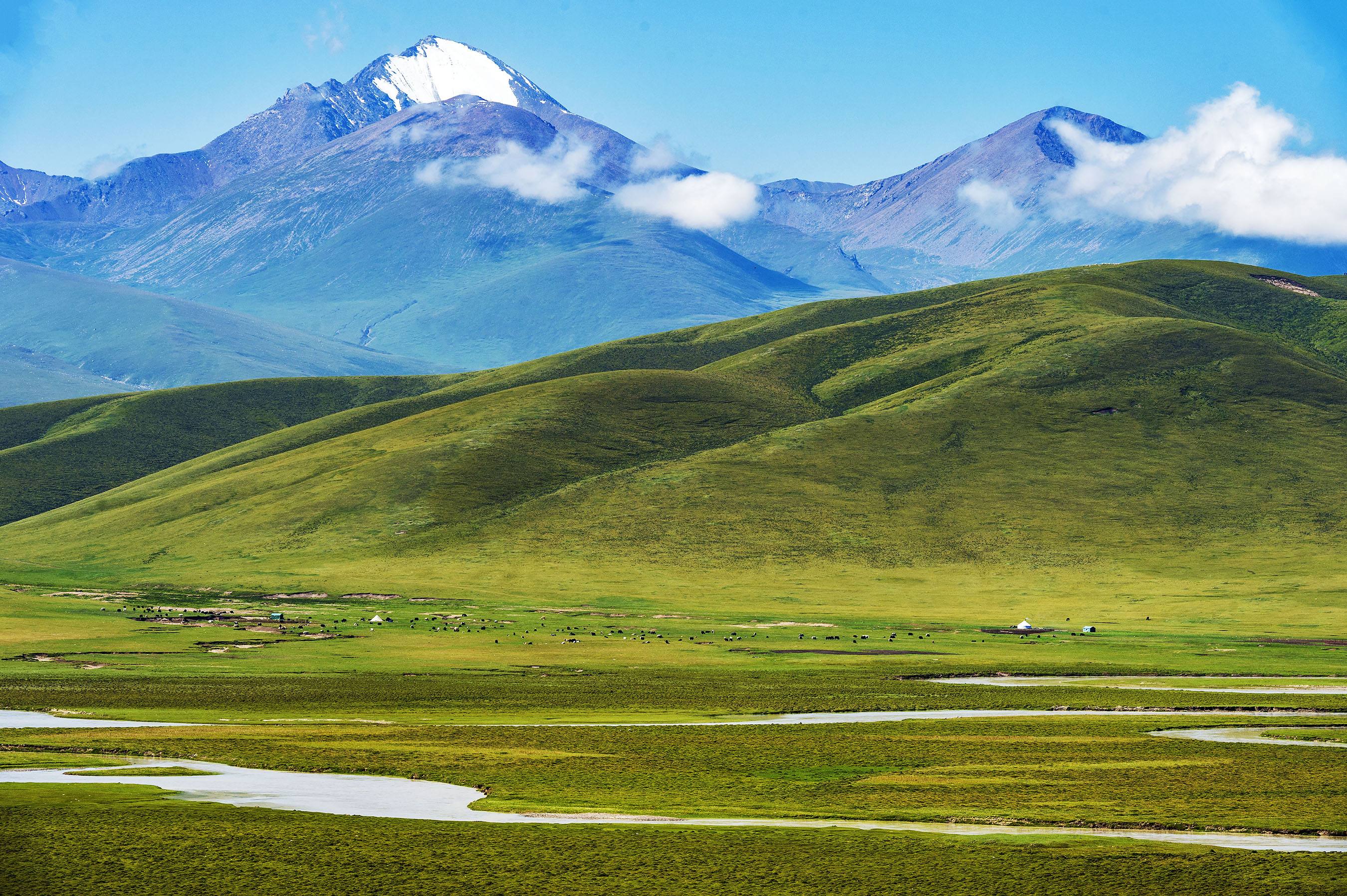 天山是亞洲最偉大的山脈之一,近處草原綠意盎然,牛羊成群,遠處山峰綿延,通體覆蓋著皚皚白雪,神秘圣潔。