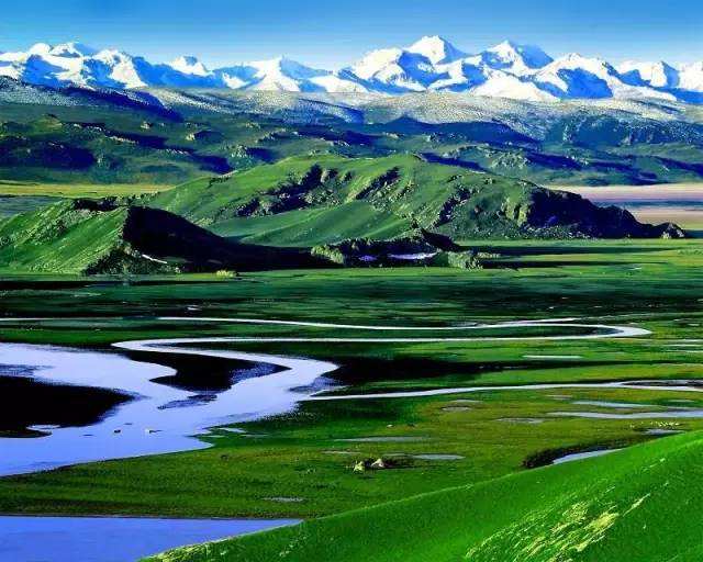 在綠色的平原上,像一條條玉帶