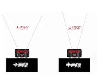 還需要注意一點(diǎn),相同的焦距鏡頭用在全畫幅、半畫幅相機(jī)上也是有一定差距的。比如,50mm的焦距鏡頭用在全畫幅機(jī)子上,它的視角就是50°左右,而用在半畫幅機(jī)子上視角就只有30°左右。