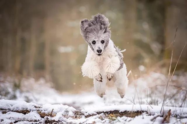 連拍模式:狗在跑動(dòng)過程中,四腳會有不同的相位,拍出來的效果也很不一樣,比如說“后腿著地式”“金雞獨(dú)立式”,四腳全部離地的“飛翔”式,等等。你需要設(shè)置至少每秒 5 張的連拍模式,來抓住每個(gè)最有趣的瞬間。
