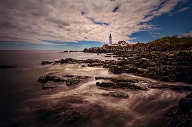 如下圖,比起空蕩蕩的海岸線和礁石,加入一個燈塔,瞬間就能讓人對整個畫面的規(guī)模產(chǎn)生直觀的了解——燈塔都顯得這么小,整個場景肯定很宏大。