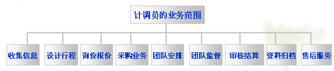 計(jì)調(diào)主要任務(wù)是按接待計(jì)劃落實(shí)團(tuán)隊(duì)在食、宿、行、游、購(gòu)、娛等方面的具體事宜,以確保行程、日程正常進(jìn)行。