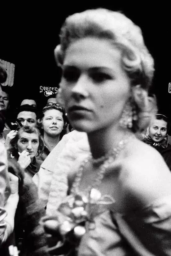 他在擁擠的大街上,在暗淡的酒吧里,在熱鬧的集會中,甚至在行駛的汽車?yán)铮脧瓶ㄏ鄼C(jī)不搶眼的特點(diǎn)以及高速膠卷、廣角鏡頭和超焦距等便利,完全用現(xiàn)場光,大量搶拍所見到的一切。