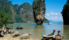 早餐后前往碼頭,搭乘船游覽有小桂林之稱(chēng)的【攀牙灣】(船程約 30 分鐘)——它是由奇異迷人的石群和矗 立海中的斷崖島嶼所組成的,因而得名——“泰國(guó)小桂林”,一路乘游船觀(guān)賞由石灰?guī)r所組成的大小島嶼,你 會(huì)禁不住感嘆大自然的神奇,登上經(jīng)典電影 007 取景地之一的著名景點(diǎn)——【占士邦 007 島】(游覽時(shí)間不低 于 30 分鐘);