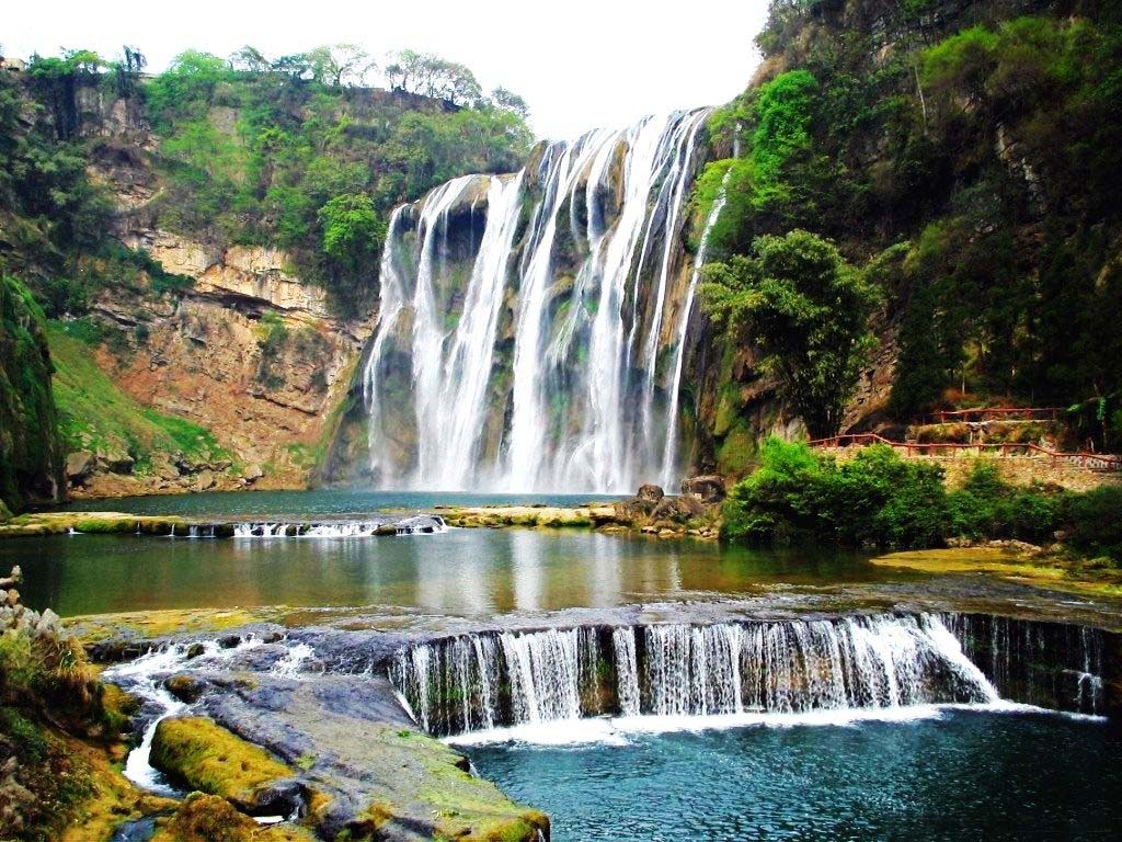 隨后游覽,【黃果樹大瀑布】(游覽約 2.5小時)世界最壯觀的瀑布之 :瀑布水飛流直瀉犀牛潭中,其瀑布雄偉壯觀,氣勢磅礴十里之外能聽到它的咆哮,最后游覽【陡坡塘瀑布】(游覽約 30 分鐘)位于黃果樹瀑布上游 1公里處,瀑頂寬 105 米,高 21 米,是黃果樹瀑布群中瀑頂最寬的瀑布,游覽結束后乘車(車程約2.5小時)返回貴陽享用晚餐入住酒店休息。