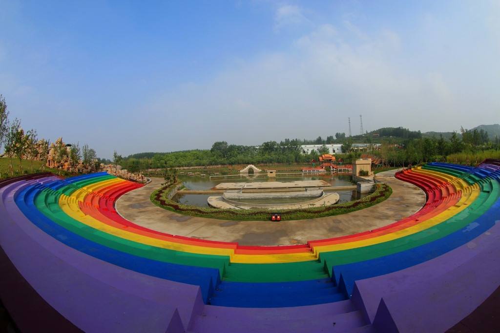 早餐后參觀沂水【雪山彩虹谷風景區(qū)】這里是彩虹仙子與東海龍?zhí)拥睦寺矍橹亍J鞘澜缥ㄒ焕寺屎缥幕黝}公園。進入彩虹門來到彩虹文化廣場,感受“彩虹浪漫花海”的世界。觀長108米,高18的“彩虹浪漫飛瀑”;體驗“彩虹-雨”文化,漫步“仙湖”、“浪漫迷霧竹林”、”孔雀谷”;情侶們還可以在“情人浪漫文化區(qū)”用同心鎖許下愛的誓言。并且還可憑票參與彩虹雨目、飛越彩虹(原滑草項目)、高空飛翔、跳躍云霄、3D繪畫、反斗轉盤、狂牛、太空健身儀、飛龜、美人魚、霹靂炮、孔雀谷、兒童項目體驗區(qū)等娛樂活動,紅嫂劇場---大型實景抗戰(zhàn)演出,觀眾可參與,如果你想秀一下演技,趕緊來喲,至于扮鬼子還是扮演八路,現場觀眾說了算。十幾個項目中任選八項免費游玩;