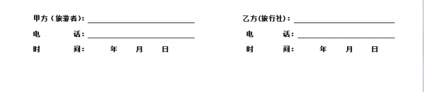 四、本協(xié)議一式二份,雙方各執(zhí)一份,受組團(tuán)社及地接社委托該團(tuán)導(dǎo)游為乙方授權(quán)簽字代表,甲方為旅游者本人(18周歲以下未成年人需監(jiān)護(hù)人簽名)。雙方同意本協(xié)議以雙方簽字即生效。