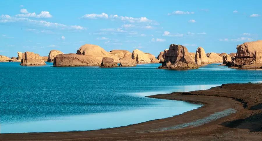 然后我們抵達(dá)深居柴達(dá)木盆地腹地的【水上雅丹】。這是世界上唯一一處水上雅丹地貌,因其位置較偏僻,即使是當(dāng)?shù)厝艘部赡懿恢趺催^去,所以至今仍是一片未開發(fā)的處女地,鮮少有人涉足。這立于汪洋之上的雅丹地貌群經(jīng)過上千年的風(fēng)雨殘蝕,如同遨游大海顯露脊背的群鯨,湖岸邊高大的鯨背是天然的觀景臺,極目遠(yuǎn)望,西邊是高低錯落的水上雅丹地貌群,有的如策馬揚(yáng)鞭,有的如奔馳的駱駝,有的像婀娜多姿的女子,魔幻而神秘。以清澈透明的藍(lán)天為幕,參差錯落的雅丹地貌與碧波交相輝映,天上鴨鳴雁啼,水中波光粼粼,這一望無際的荒漠中憑空而出了一片”汪洋“,只有親身看過這一片汪洋上的鬼斧神工之作,才會明白為它為什么會被人稱為“魔鬼城”。