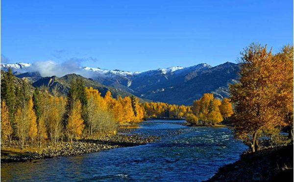 到達可可托海鎮(zhèn)后享用午餐游覽位于額爾齊斯大峽谷的【可可托海國家地質(zhì)公園】(含區(qū)間車)(游覽約120分鐘)可可托海哈薩克語意思為"綠色的叢林"。蒙古語意為"藍色的河灣"。正如其名,可可托海的水是藍色的和綠色的,這里是全國第二寒極。乘坐區(qū)間車途中參觀【白樺林】,野生樺樹林生長在額爾齊斯河凸岸河灣上,嫵媚婆娑,柔軟的枝條舒緩下垂,伴著清風(fēng)纖纖舞動,綽約若處子,曼妙無比;【神鐘山】,又稱阿米爾薩拉峰,如一口巨大座鐘立于額爾濟斯河畔,是當(dāng)?shù)卦∶竦木駡D騰。