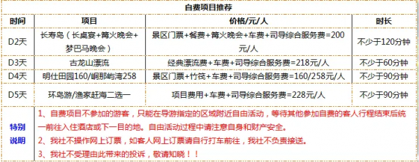 備注:因客人自身原因無法參加,未產(chǎn)生的費用一律不退;