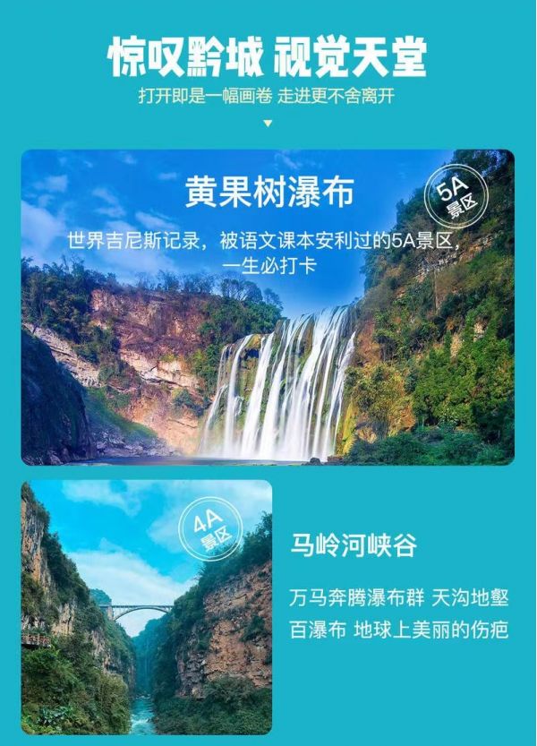 1.小交通:景區(qū)內(nèi)用車(黃果樹景區(qū)觀光車50元/人+保險(xiǎn)10元/人:荔波大小七孔電瓶車40元/人+10元保險(xiǎn):西江千戶苗寨景區(qū)電瓶車20元/人+保險(xiǎn)10元/人:夢(mèng)凈山索道140/人+觀光車20/人+保險(xiǎn)10/人,為景區(qū)必須乘坐項(xiàng)目。馬嶺河電梯40元/人,黃果樹往返扶梯50元/人,大七孔游船單程20元/人,鴛鴦湖游船30元/人以及景區(qū)內(nèi)其他自費(fèi)項(xiàng)目可根據(jù)自身需要選擇!