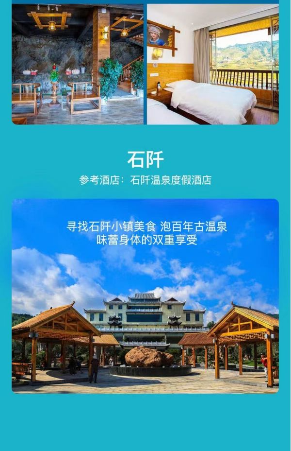 驅(qū)車前往石阡溫泉古鎮(zhèn),享受下石阡古溫泉(不限次),放松下身體,洗去疲憊。Tips:泡溫泉需自帶泳衣,酒店附近也有賣泳衣的地方,請(qǐng)謹(jǐn)慎選購(gòu)。