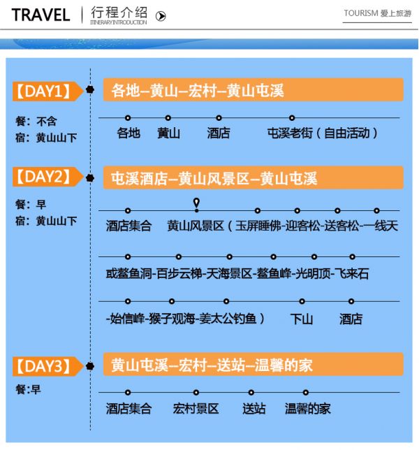 14:00——交通搭乘回程大交通返程。結(jié)束愉快旅行。溫馨提示:黃山北站參考14:30以后車(chē)次、黃山機(jī)場(chǎng)參考15點(diǎn)以后航班。周末大型節(jié)假日往后一小時(shí)。
