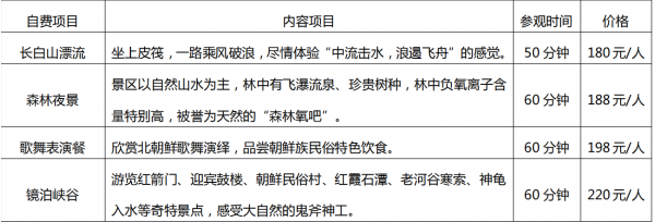 5、由于季節(jié)性或景區(qū)是否開放因素,自費項目可能會作出相應調整,但數(shù)量不會增加。6、旅游者與旅行社雙方協(xié)商一致,可選擇以下自費項目,價格包含:門票、車費、導游和司機服務費、停車費等綜合費用。