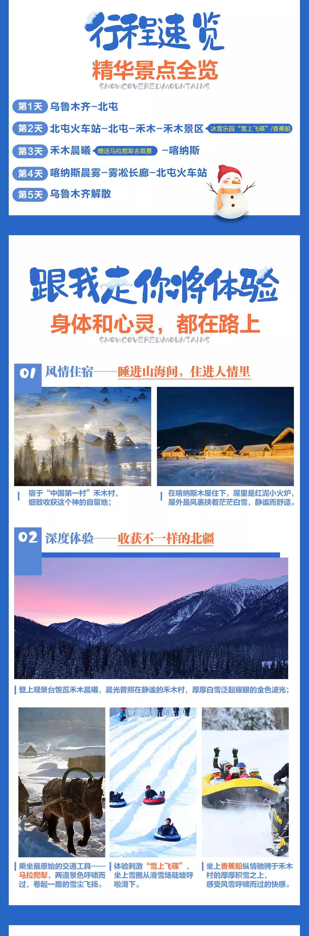 4. 贈送禾木村冰雪樂園中的滑雪或香薰船體驗(yàn),如游客想?yún)⒓悠渌鼕蕵讽?xiàng)目費(fèi)用敬請自理。