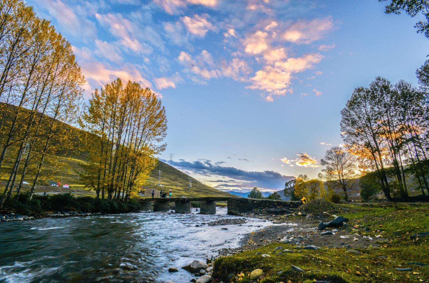 清澈的江水流過(guò)開滿野花的草地,風(fēng)中送著自然的氣息,