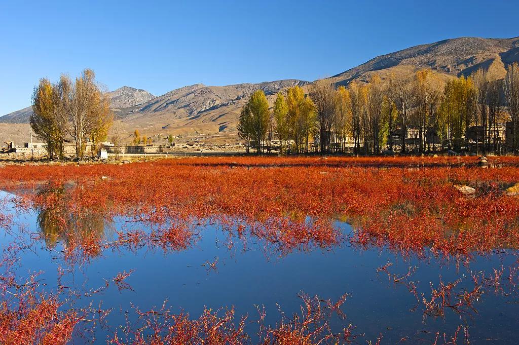 金黃的柏楊,連綿起伏的山巒,