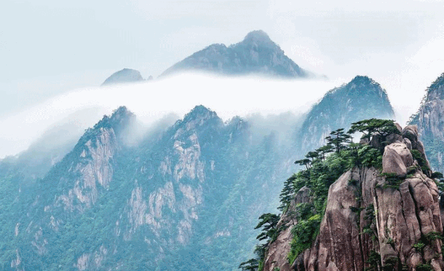 一座不在五岳之中的山,卻集泰山之峻、華山之險(xiǎn)、峨眉之秀、雁蕩之奇于一身,又兼有遒勁盤曲的蒼松、奇巧別致的怪石、翻騰洶涌的云海、常年不息的溫泉,原本默默無(wú)名的黃山,就這樣以包羅萬(wàn)象卻自成一體的豐富,從安徽南部的煙雨迷霧中,走入文人的詩(shī)詞文章,進(jìn)入萬(wàn)千大眾的眼界中。