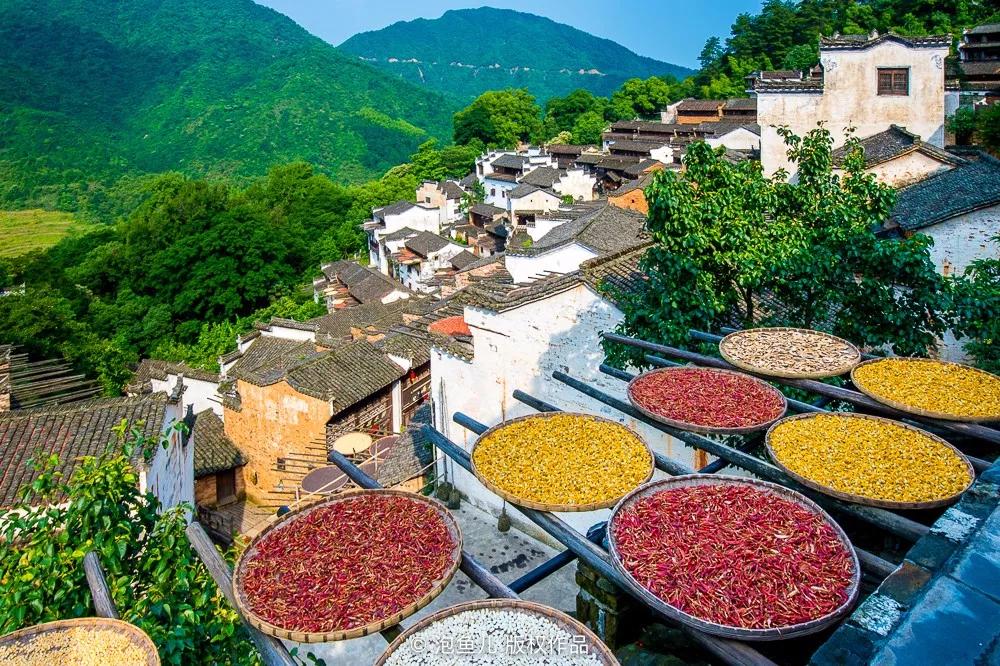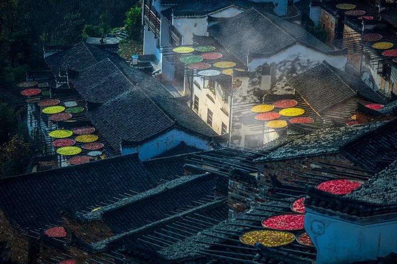 篁嶺,一個(gè)隱藏在大山深處奇特的山居村落,因其獨(dú)特的曬秋景觀、粉墻黛瓦的徽式古民居將會(huì)深深吸引著世界目光。飽經(jīng)滄桑的徽式民居土磚外墻與曬架上五彩繽紛豐收成果組合,繪就了一幅閑適、安詳、恬靜的古村風(fēng)情畫,與遠(yuǎn)山、近水、粉墻、黛瓦相印成趣,感受天人合一的境界。