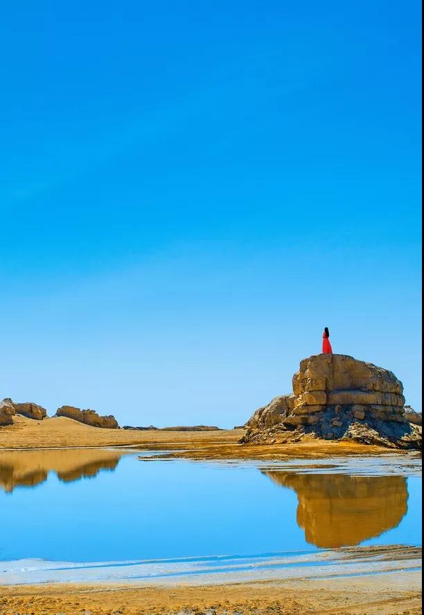 這是世界上唯一一處水上雅丹地貌,因其位置較偏僻,即使是當(dāng)?shù)厝艘部赡懿恢趺催^去,所以至今仍是一片未開發(fā)的處女地,鮮少有人涉足。這立于汪洋之上的雅丹地貌群經(jīng)過上千年的風(fēng)雨殘蝕,如同遨游大海顯露脊背的群鯨,湖岸邊高大的鯨背是天然的觀景臺(tái),極目遠(yuǎn)望,西邊是高低錯(cuò)落的水上雅丹地貌群,有的如策馬揚(yáng)鞭,有的如奔馳的駱駝,有的像婀娜多姿的女子,魔幻而神秘。以清澈透明的藍(lán)天為幕,參差錯(cuò)落的雅丹地貌與碧波交相輝映,天上鴨鳴雁啼,水中波光粼粼,這一望無際的荒漠中憑空而出了一片”汪洋“,只有親身看過這一片汪洋上的鬼斧神工之作,才會(huì)明白為它為什么會(huì)被人稱為“魔鬼城”。