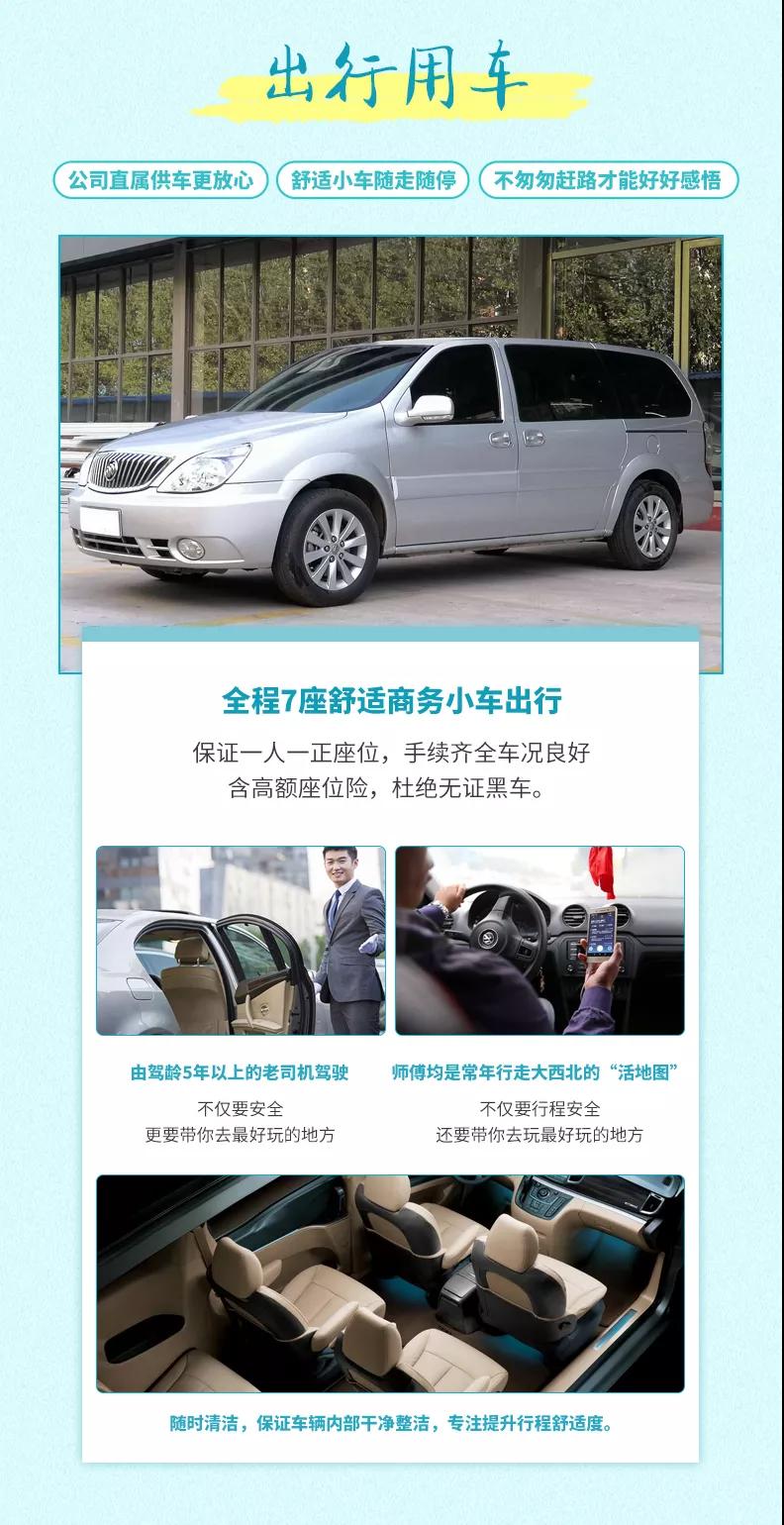 2、交通:私享VIP4-6人小團(tuán),全程舒適7座商務(wù)車出行,保證一人一正座位,車型大小根據(jù)實(shí)際人數(shù)安排,且由駕駛經(jīng)驗(yàn)豐富的司機(jī)為您的出行保駕護(hù)航,報(bào)價(jià)包含車費(fèi)、油費(fèi)、停車費(fèi)、維修費(fèi)及司機(jī)勞務(wù)費(fèi)。