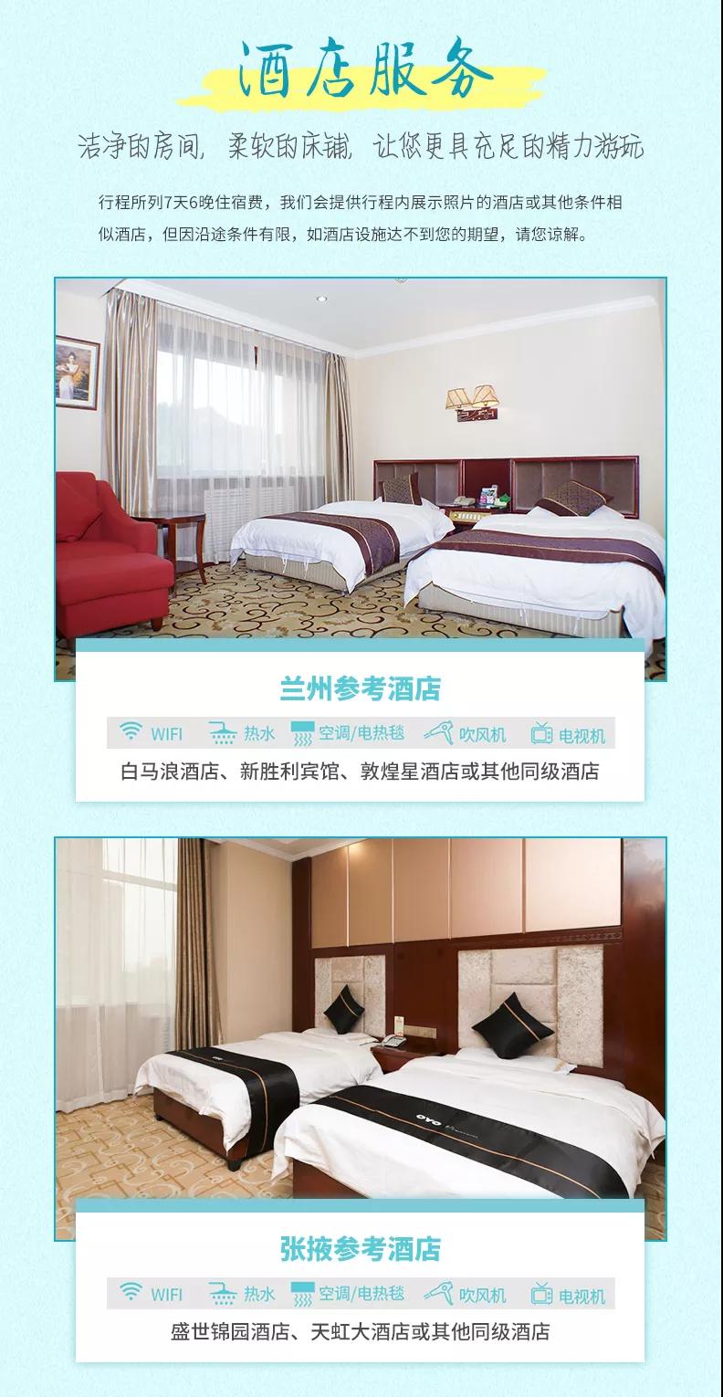 蘭州:白馬浪酒店、新勝利賓館、敦煌星酒店或其他同級(jí)酒店