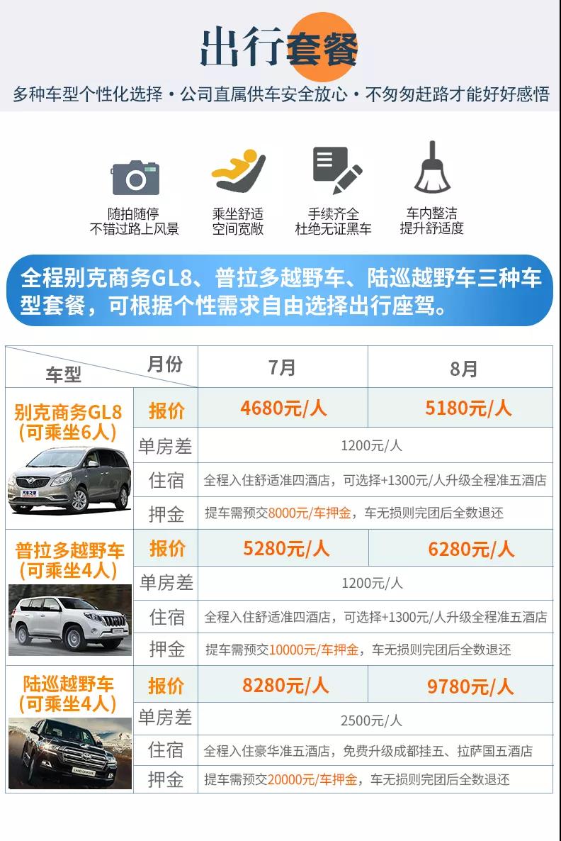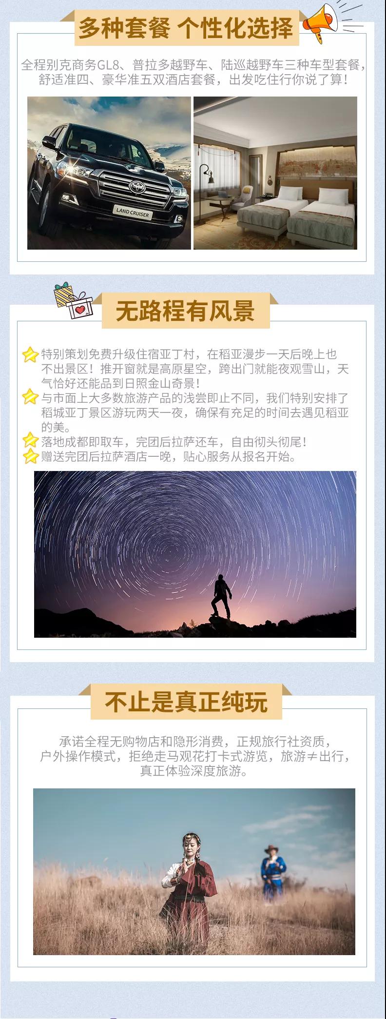 (1)根據(jù)季節(jié)、路況各方面的因素,我們將在稻城縣和香格里拉鎮(zhèn)選擇更好的住宿點(diǎn)安排入住。