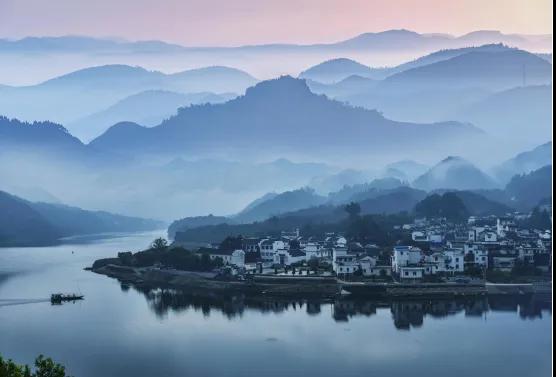 若你遠(yuǎn)來,登一艘船,置身山水泛舟江渚,看不盡,兩岸山林霧罩,江上水鳥鳧行水氣成煙如夢似幻;