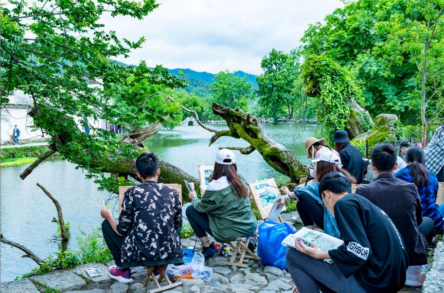 都可以看到來宏村寫生的學(xué)生,