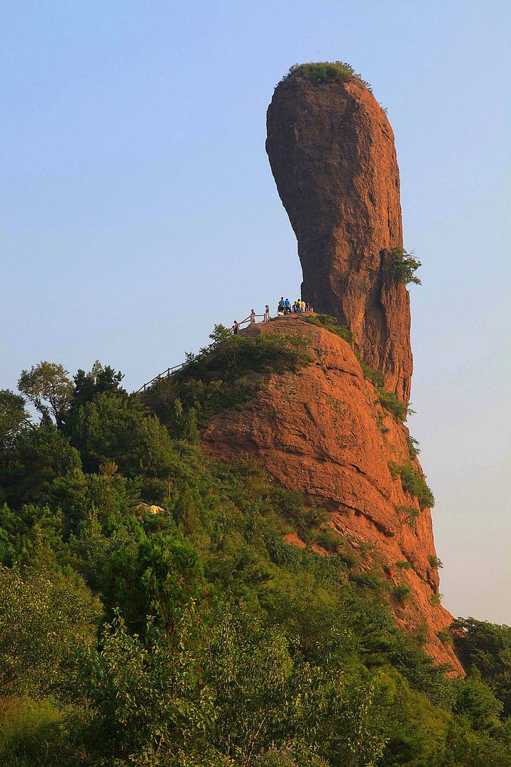 早上7:00出發(fā)赴棒槌山,預(yù)計(jì)7:20到達(dá)。拍攝棒槌山的獨(dú)具風(fēng)采的美景。頗為奇妙的是,磬錘峰半腰長(zhǎng)著一株高約3米的桑樹,據(jù)測(cè)這株桑樹與磬錘峰相親相愛已經(jīng)三百年了,據(jù)傳為我國(guó)最早之桑樹。峰下有一平臺(tái),東面斷崖有清代密宗雕像。